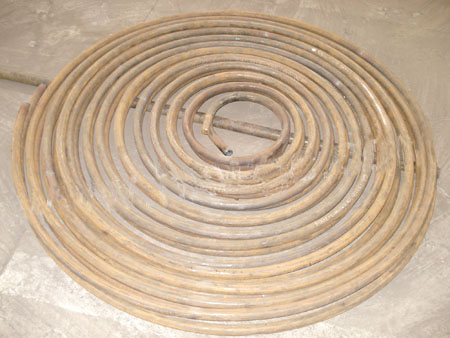 簡單的來講:蚊香盤管就是是由原來一大卷的銅管彎,經過加工制成長度由15米到300米不等規格的盤管產品罷了,這樣以便用于銅管產品的熱處理、運輸及現場安裝配管等。此外,因經過加工處理的盤管外形形狀與蚊香近似,故叫蚊香盤管。傳統的蚊香盤管生產方式,是先把銅管加工成所需長度的直管,然后再人工喂料給彎管機,盤制成蚊香盤管。